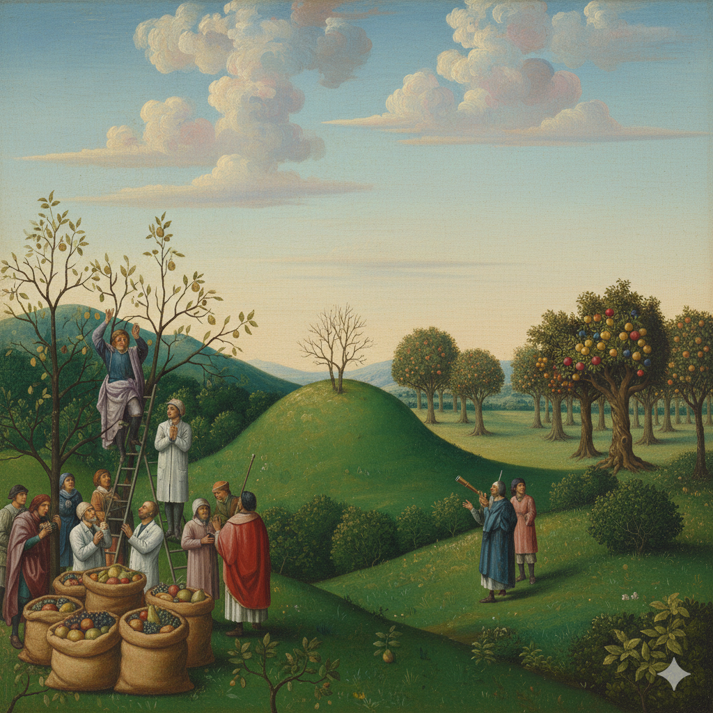 Diligent scientist (right) writing incremental papers as Newton (left) defies own law of gravity to discover new scientific paradigm.